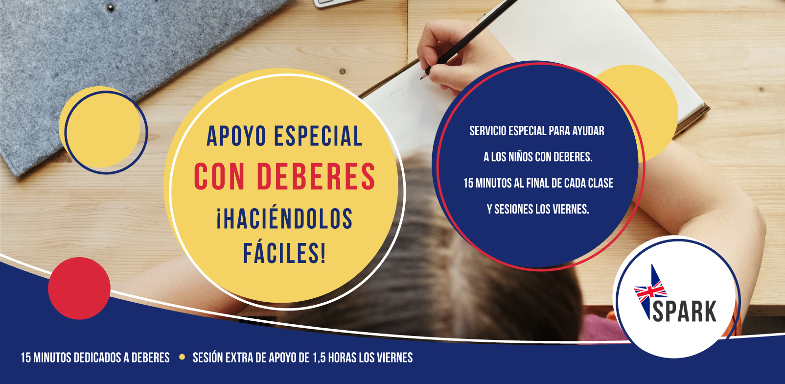 Una parte importante de la enseñanza de inglés en Spark es que los niños se vayan mejorando tanto su nivel de inglés como hablante como las notas que van sacando en el colegio. También aunque reconocemos que los deberes sean importante para mejorar el nivel, queremos dentro de lo posible que niños hagan sus tareas aquí en Spark en lugar de llevarlo a casa. Es por eso que hemos creado nuestra estructura única de apoyo con deberes en Spark.