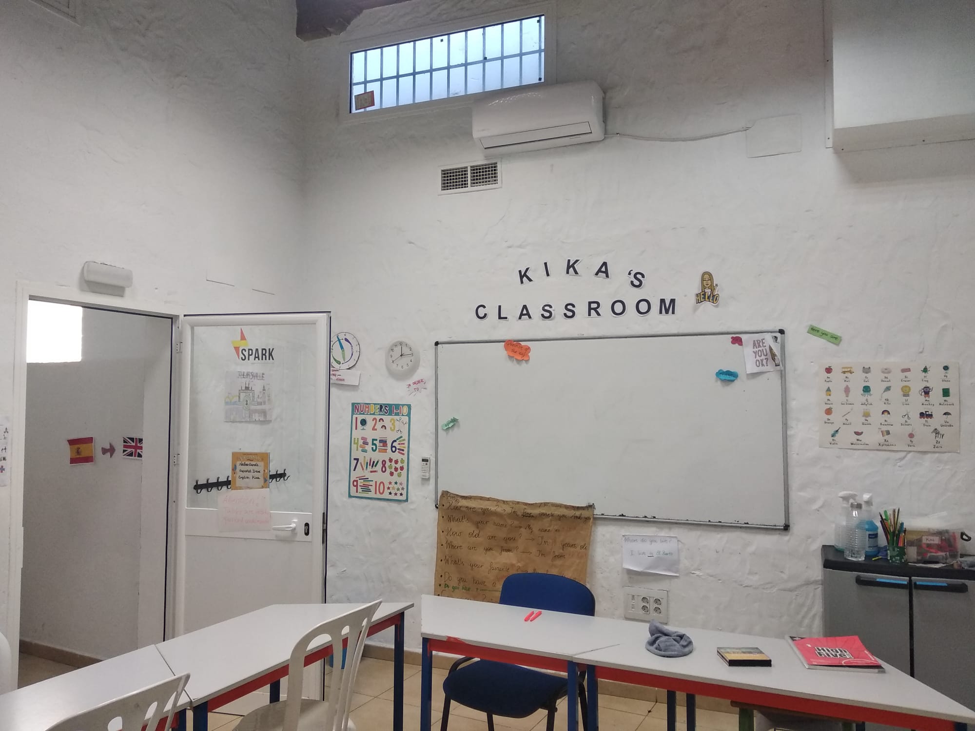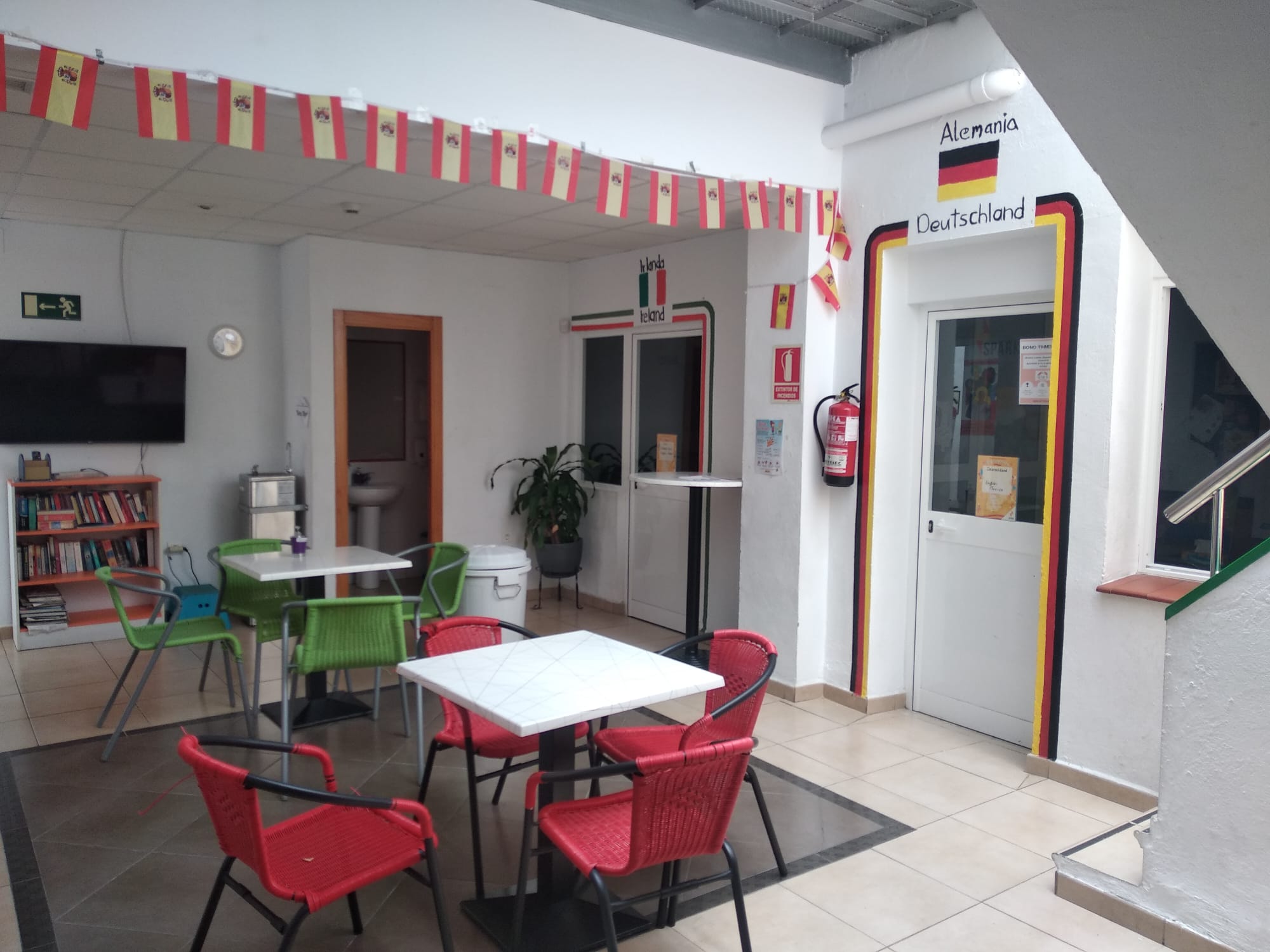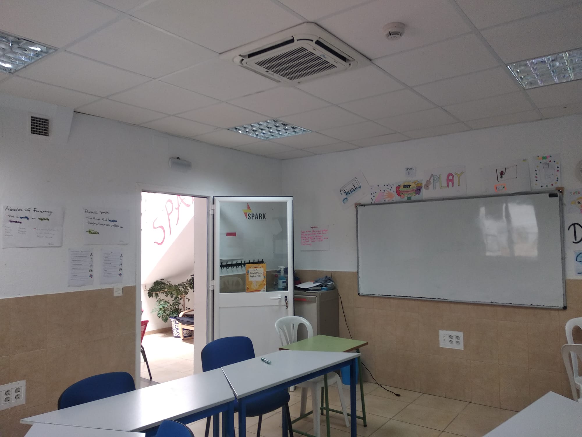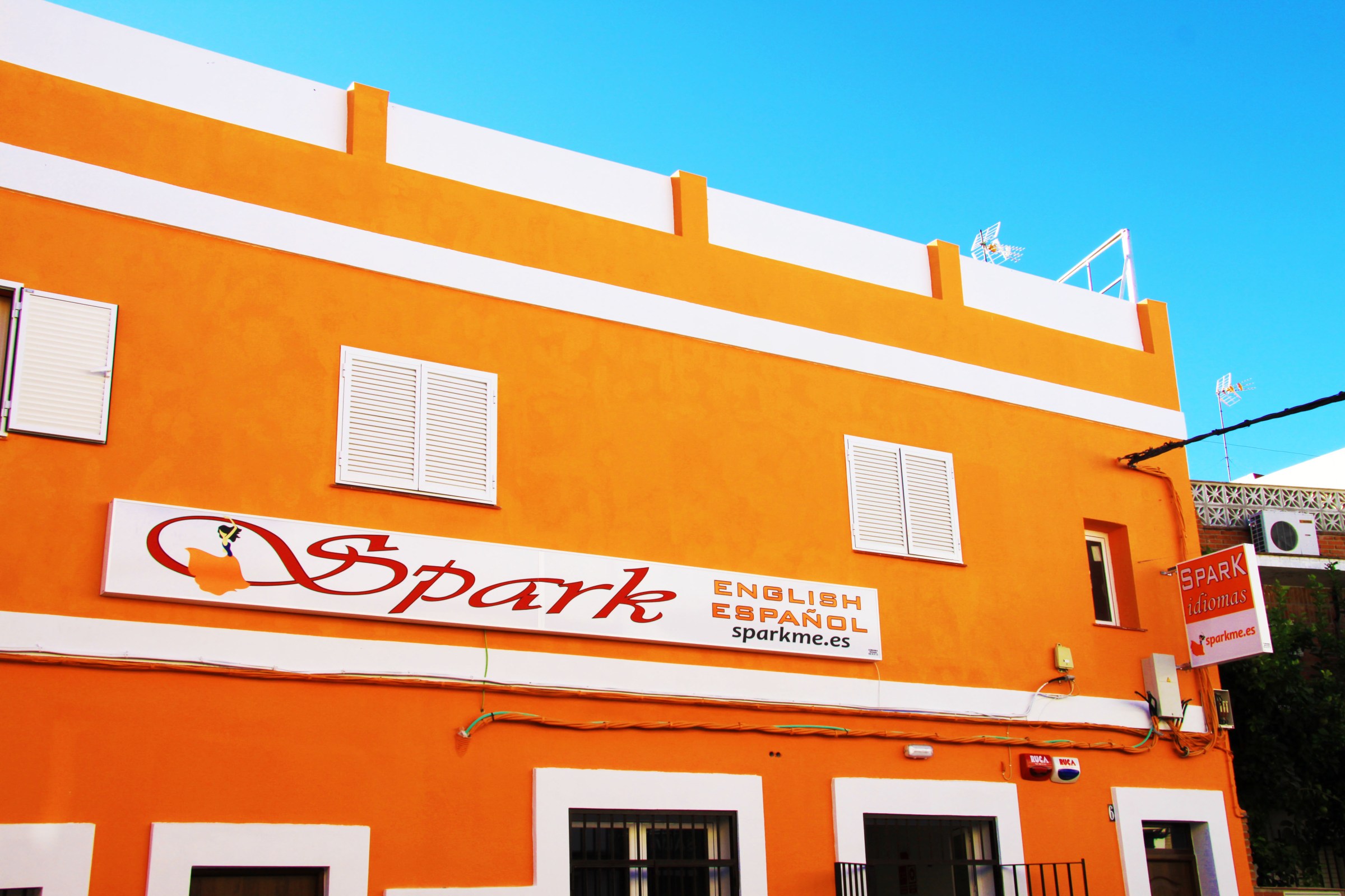 Nuestro centro se encuentra a escasos 15 minutos a pie del centro histórico de El Puerto de Santa María. El edificio consta con dos plantas, la superior donde se encuentran las habitaciones para el alojamiento de los estudiantes de nuestros “School Tours” y la planta baja donde se encuentran las aulas de la academia de inglés. Esta planta consta de 7 aulas totalmente equipadas para la enseñanza de idiomas. Las aulas están situadas en torno a un patio interior equipado con mesas y sillas para que los padres puedan esperar mientras sus hijos están en clase. Nuestras aulas disponen de grandes ventanales para dotarlas de luminosidad y a la vez permite a los padres poder ver qué sucede en el interior sin interrumpir la clase. Por otro lado nuestros alumnos en determinadas actividades organizadas con nuestros profesores podrán hacer uso de la fantástica terraza del edificio para hacer algunas actividades al aire libre para mejorar su nivel de inglés. Ademas nuestro edificio esta totalmente adaptado para personas con movilidad reducida.