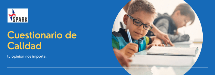 En Spark tu opinión nos importa para que podemos ir mejorando siempre. Nuestro objetivo no es solo dar clases pero enseñar inglés con tanta profesionalidad y tantas ganas que sea una experiencia inolvidable para nuestro alumnado. Si tu o tus niños habíais dado clases con Spark Inglés nos encantaría que respondes el cuestionario, te tardan solamente 5-10 minutos. Muchas gracias.